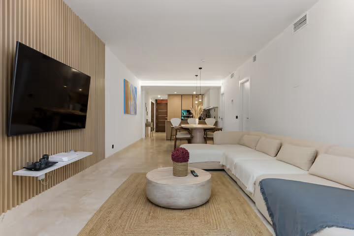 Un amplio salón-comedor con Smart TV de 65”, ideal para veladas inolvidables en un ambiente moderno.